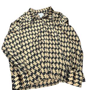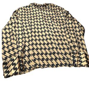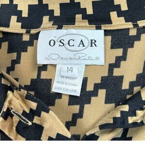 VTG Oscar de la Renta Womens Black Gold Houndstooth Silk Blend Blouse Luxury 14