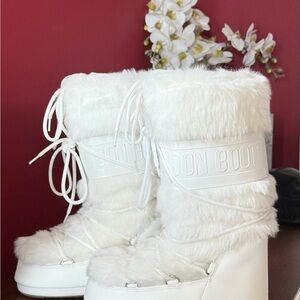 Moon Boot Icon Faux-Fur White/Cream Snow Boots US 7