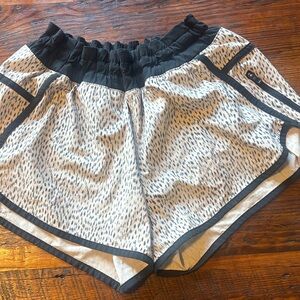 Upgrade your activewear with these fun black and white leopard print athletic shorts. Designed for comfort and style, perfect for any workout or errands.