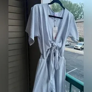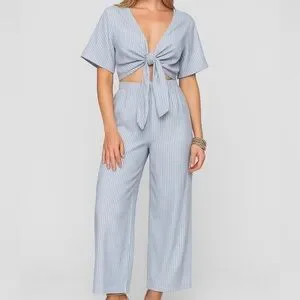 🆕BuddyLove Ilene Striped Cropped Jumpsuit XS Blue White Summer Boho Resort Wear