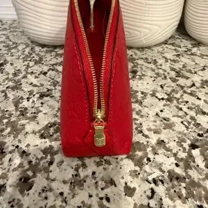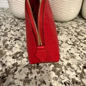 Elevate your style with this luxurious Luis Vuitton red designer embossed leather make up pouch. Perfect for any occasion, this elegant accessory combines fashion and functionality. ❤️❤️❤️