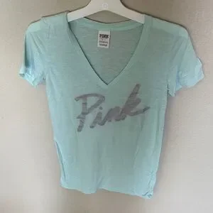PINK Victoria's Secret Aqua V-Neck Tee