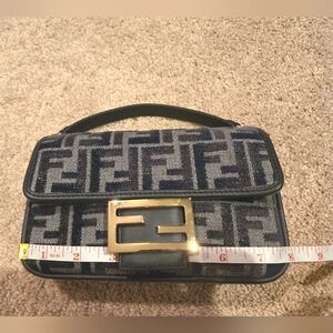 Stylish Fendi bag with a navy and black pattern. Features iconic logo design. Perfect for adding elegance to your look.