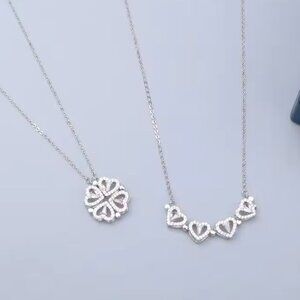925 Sterling Silver 4 Leaf Clover Infinity Necklace with diamond solitaire stones