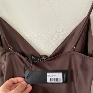 NWT LIONESS About a Girl Maxi Dress in Chocolate | Satin, maxi, nwt, solid, Size: M.