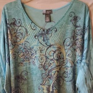 Liz & Me Collector series Elegant Blues Floral 3X Women's Top 3/4 Sleeves