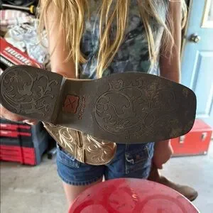 Step out in style with these rugged tan cowboy boots. Perfect for any occasion, these boots offer both comfort and durability. Gently used.