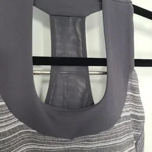 Lululemon athletic tank top with built-in support. Gray in color. Mesh style neckline. Yoga, gym, workouts, hikes. Great with denim.