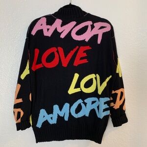 Peace Love World Cardigan Sweater XXS NWOT Black Love Theme Snaps Cozy Artsy
