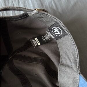 Stylish gray cap featuring a blue NY logo. Perfect for casual wear.