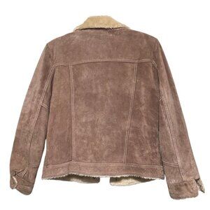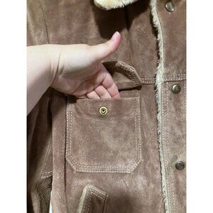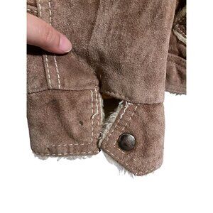 Vintage Grande Bay Suede Trucker Jacket 44 Sherpa Faux Fur Lined Western Cowboy