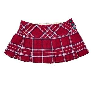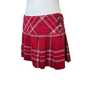VTG Y2K Abercrombie & Fitch Pleated Wool Micro Mini Skirt Red Plaid Button Sz 10