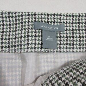 ANN TAYLOR womens green gray Wool Blend houndstooth A-line below knee skirt 14