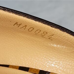 Condition - This shoes are in excellent used condition. There is minor creasing on the toe from being worn. There is a small color transfer on the outside left shoe, it is very small and hard to see. The heel shaft is in great condition, there is no scuffing or missing design on the actual shaft aside from one tiny spot the size of a pen head. Otherwise, this shoes are in great condition. They come with dustbags for each shoe.