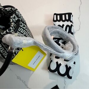Brand new with tags Marc Jacobs small bucket made of soft poofy leather embossed with the iconic Marc Jacobs monogram logo. Has a structured top handle and a crossbody strap. Drawstring has beautiful silver toned hardware.