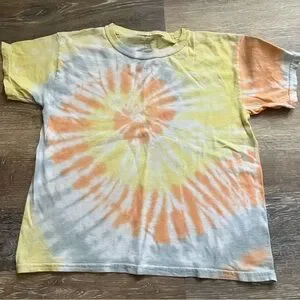 Fun and colorful Gildan t-shirt bundle. Includes a yellow tie-dye, a bright blue, and a deep purple tee. Perfect for playful style. Great for play! See additional photos for any flaws or blemishes and close ups of designs and garment tags that show material content!