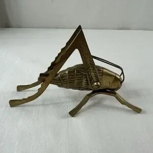 Vintage Solid Brass Cricket/Grasshopper Figurine Paperweight W/ Moveable Legs