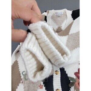 Vintage Milano Design Group Sweater Womens Large Brown Cream Argyle Floral Knit 90s