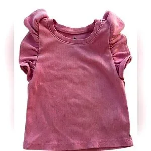 Baby Gap Flutter Sleeve Ribbed Mauve T Shirt with Ruffle Accents- 3T