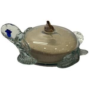 Sea Turtle Art Blown Glass Filled with Sand & Shell Beach Décor – Clear – Blue
