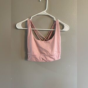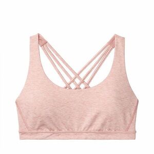 Stylish pink sports bra with strappy back design. Perfect for workouts.