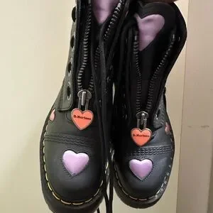 Dr. Martens Black Boots with Pink Heart Accents