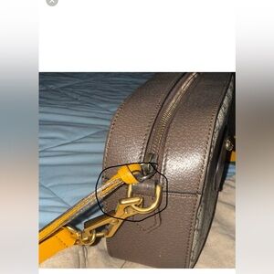 @2ccarlino2 Hi Carol, there is minor wear/discoloration right where the yellow leather strap loops through the hardware. The hardware itself has some light tarnish, which is normal for pre-loved Gucci bags. I can take a picture of it clearly and circle it. I will add the photo :)