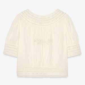 ZARA Round neck, short sleeve blouse with cuff detail. Matching embroidered