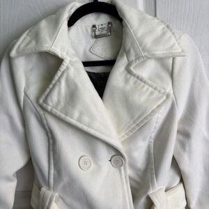 JOUJOU Ivory ColoredDouble Woven Layer Collared Button Peacoat Jacket Size Small