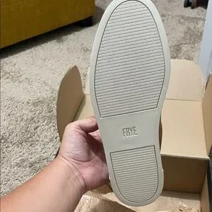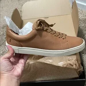 Chic tan leather sneakers by Frye. Sleek design with comfortable fit. Ideal for everyday wear.
