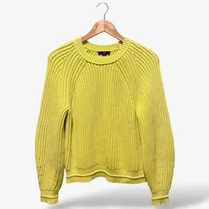 J. Crew Chunky Knit Sweater Crewneck Chartreuse Yellow Green Size M {AK184}