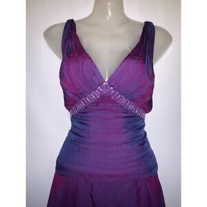 Vintage Tadashi Dress Size 8 Purple Iridescent Silk Beaded Flutter Skirt 90s Y2K