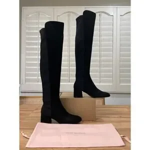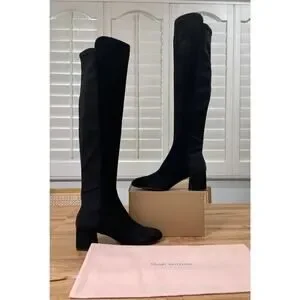 Stuart Weitzman 5050 Block Stretch Suede Over-The-Knee Black Boots Size 8 NWOB