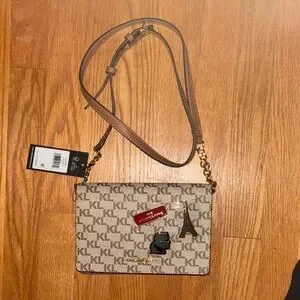 Karl Lagerfeld Monogram Crossbody Bag with Brown Accents