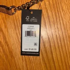 Chic crossbody bag featuring Karl Lagerfeld monogram. Includes adjustable strap and gold-tone hardware. Stylish and versatile.