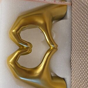 Elegant gold sculpture featuring hands forming a heart shape. Perfect for home decor. New, NO BOX
