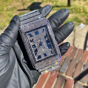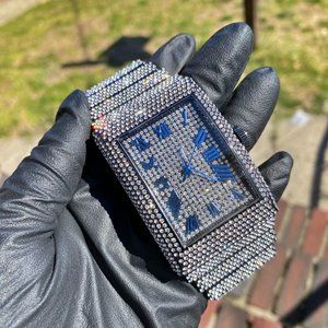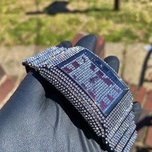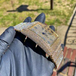 Full Iced Gold PT/ White Gold PT Hip Hop Rectangle Luxury Stylish Quartz Watch