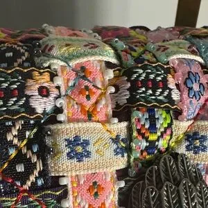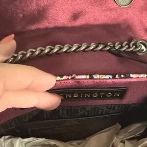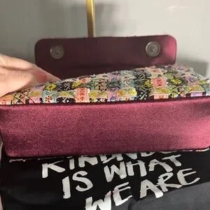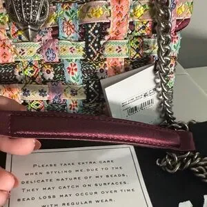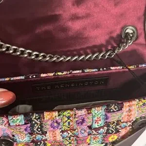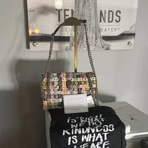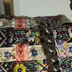 This vibrant women bag features a colorful design with a stylish chain strap. Perfect for adding a pop of color to any outfit.