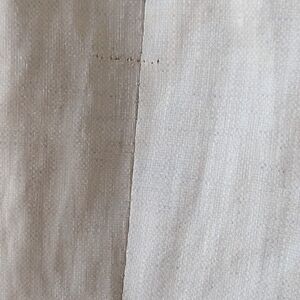 The piece is 75% linen- with 25% polyurethane-- it's natural linen with a protective sheen over it, making it both natural but moisture resistant.