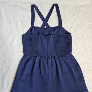 Madewell Jumpsuit Womens Size 2 Navy Blue Smocked Button-Front Wide Leg Cropped