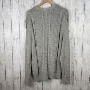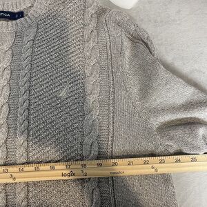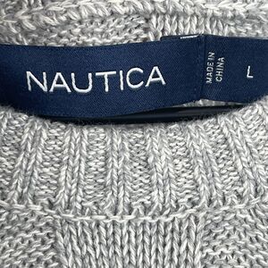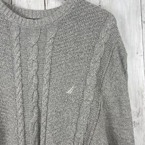 Nautica Mens Cable Knit Sweater Sz L Gray Crew Fisherman Sailing Preppy Casual