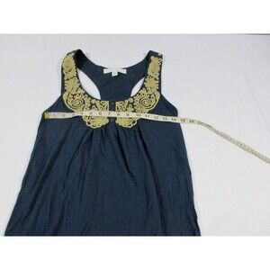 Feather Bone Anthropologie Navy Gold Embroidered Sleeveless Tank Top Blouse Sz M