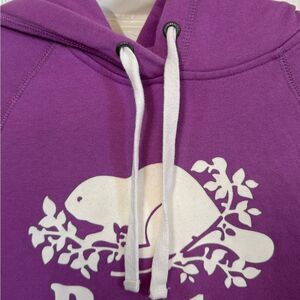 Cozy purple hoodie. Features white Roots logo. Kangaroo pocket. Drawstring hood. Impressive quality with beaver graphic, high end, smoke free, MINTY