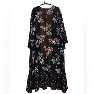 SOLD: Mercari. Torrid Whimsigoth Black Floral Ruffle Hem Duster