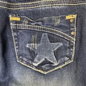 Stylish dark blue flare jeans. Ideal for a trendy casual look.