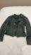 Stylish dark green faux leather jacket by Insight. Features a modern design with zippered pockets.