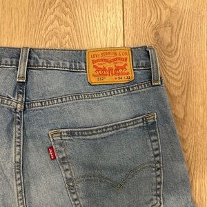 Levi 512 Jeans Slim Taper Size 34x32. Jeans are a medium wash (worn to ride colorway) with some stretch. Jeans are in great condition Jeans are 70% Cotton, 28% Lyocell (Lenzing TENCEL™ Lyocell), 2% LYCRA®