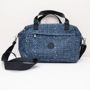 Kipling Flora Shoulder Bag Printed Notes Purse Removable Strap Blue White