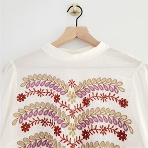 Anthropologie Meadow Rue Daphne Embroidered Blouse Cotton Gauze Boho Festival