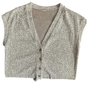 Authentic vintage 90s knit button-up top in a timeless speckled beige. Features a textured knit, flattering V-neckline, and cap sleeves for easy layering or wear on its own. Shoulder-to-shoulder: 20”, pit-to-pit: 20”, length: 25” for a relaxed, comfortable fit that skims the hips. The perfect sustainable style piece for lovers of retro fashion, slow fashion, and one-of-a-kind thrift finds.